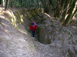 | かなりえぐられた道だ | 気持のよい尾根歩き | 山頂展望所まで1.4Km |