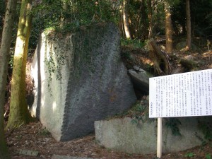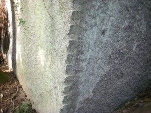 | 石切場跡 | でかい石だ | 矢穴(楔跡・くさびあと)だそうだ |