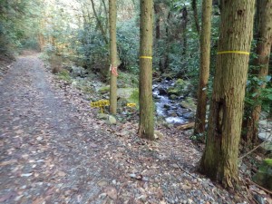 | とてもきれいな登山道である | 滝を見に右へ(9:23) | 道は狭いので注意 |