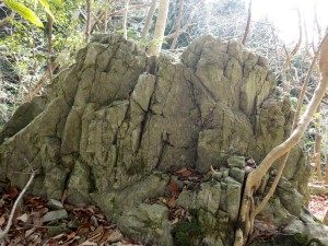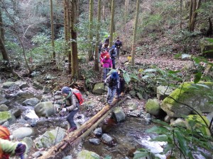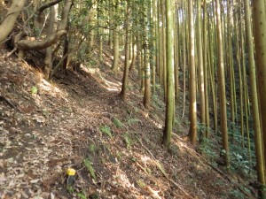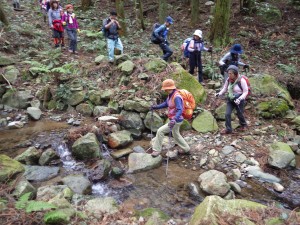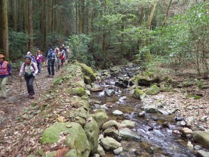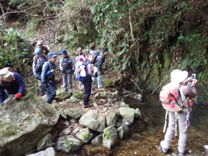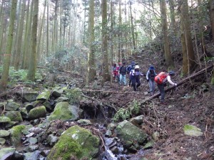 | 杉の植林帯を降る | 兵頭岩とある(13:01) | 沢沿いに歩く |