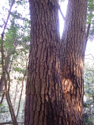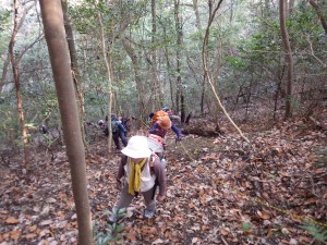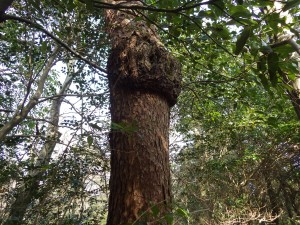 | 金満尾根に取り付く(9:06) | 大きな二股の松の木だ | 巨木に驚く |