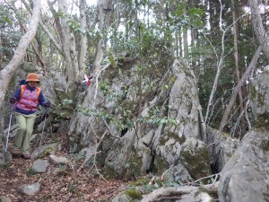 | 金満山525.08m(10:22) | 岩場は未だ続く | 別名オニシバリ(ジンチョウゲ科) |
