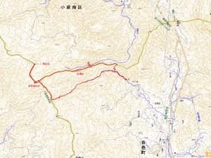 | 滝の上部 | ショートカットで尾根へ(9:49) | 見返りの坂と名づけられている |