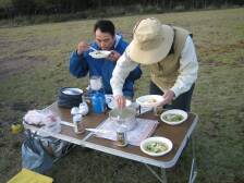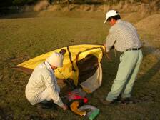 <参考コースタイム> ビジターセンター−(55分)−白鳥山山頂−(25分)−三叉路分岐−(10分)−六観音神社−(20分)−甑岳分岐−(50分)−甑岳山頂−(30分)−露天風呂分岐−(5分)−車道−(10分)−不動池−(15分)−駐車場 ※休憩時間は含んでいません。あくまでも参考時間です。 休憩をいれて約4時間の行程です。 <明日はいよいよ韓国岳> 駐車場に着いた私たち夫婦は空腹ですぐに食事の準備、MORIさん夫婦はテント貼り、 明日はいよいよ韓国岳、食事を済ませ片付けをして寒さもこたえてきたので早々と寝ることにした。 |