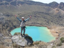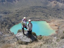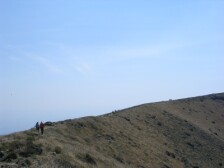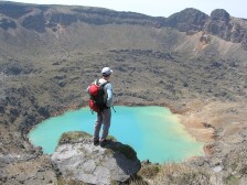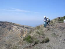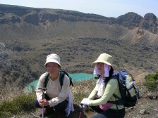 | 火口縁を歩く登山者 | 火口湖を背にして | 危険そうだがそうでもない |