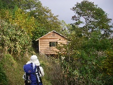 | この木をくぐるともうすぐ山小屋 | やっとついた | 小屋の傍には水場あり(水量は少ない) |