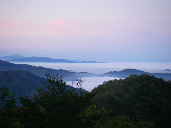| ▲朝焼けの中の雲海 | ||