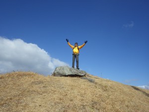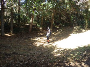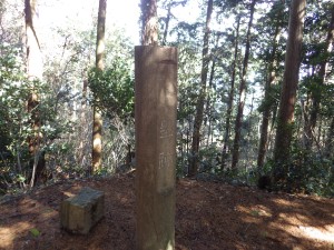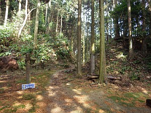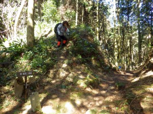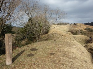 | 今度は東峰を目指し整備された道を進む | 土塁跡とあるので土塁の上を歩いていたようだ | ここが東峰326mこと「つつみ跡」(12:25) |