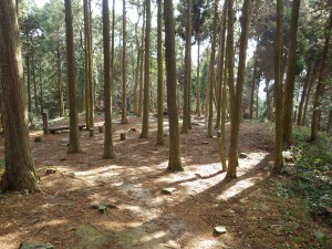 | 山城跡だけに広い | 九千部山が見える | りっぱな方角盤 |