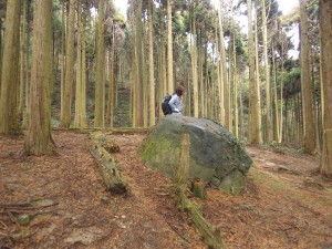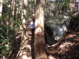 | 階段を下る | 鐘撞堂とある(12:30) | 巨石の横を通過 |