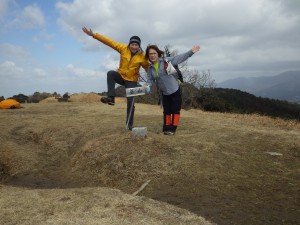 2015年2月8日(日) 天気 曇り一時晴れ ■出発時間:午前8時30分(自宅) ■メンバー:家内と私 今朝はどんよりとした空でポツポツと雨が降り出した。今日は北九州マラソンの日で参加する人はもちろんのこと応援する人、準備した人など関わる人は大勢いるだろう。 市民なら応援なり行きたいところだがマラソンに興味がない私にとってやっぱり今日も山に行きたい。 以前から行きそびれていた福岡県と佐賀県の境にある「基山」。地名は「きやま」であるが山の名は「きざん」と読む。読みが違うことにもきっと意味があるのであろう。 基山は、史跡で有名であるが、何と大和朝廷時代と言うから日本最古の山城跡である。 城の名は基肄城(きいじょう)で朝鮮式の山城とのことだ。 史跡めぐりとして整備された道なので観光でも歩けるところだが、今回私たちが歩いたルートは整備されていない道もあるため地形図とGPSが役にたった。 登山口は東北門跡への取り付き点でJR原田駅から高速道の下を抜け、狭い未舗装の林道を上ってくる。登山口に2台ほど車が停められると聞いてきたが、乗用車だと1台しか無理であろう。 ここの登山口を利用するなら林道に入る手前の(ガードをくぐってすぐ)道脇に駐車スペースがあるのでそこから歩いたほうが間違いないようだ。 雨はポツポツと降っていて家内は傘をさして階段を歩いている。お滝の行場を通過すると道は登山道らしくなり樹林帯の中なので雨も落ちてこなくなる。 東北門跡に着くと道は別れていて山頂方面と進む。礎石群を見て再び上り始めると前が明るくなってきた。山頂は近い。北帝門跡への分岐を過ぎると笹の中を上りきって草の広い城跡の山頂に出るる。空に青い部分が広がってくるが風が強くとても冷たい。 南端の丘の上に頂上標識があって祠もある。展望はもちろん抜群である。 しばらく眺めを楽しみ寒いので行動食らしきものを口に入れ、今度は北帝のピークを目指す。 北帝門跡への分岐点からカヤの中に入るがすぐに整備された道が並行してあるのに気が付きその道を歩く。途中、ピークへの踏み跡があったので急斜面を進むと壊れかけた「福岡県」と書かれたブロックのようなものがある。よくわからないがここがピークであろう。 下山は戻るのも面白くないのでとにかく東へ適当に急斜面を下ると道が見えてきた。北帝門跡の石柱を見てさらに尾根道(県境)を進む。踏み跡はあるが、正規のルートではないのでわかりづらいところが何か所かある。 尾根道を下りきると東北門跡に到着する。ここから今度は東峰を目指し整備された道を進む。 盛り上がった尾根道は土塁跡でもある。窪んだ場所に着くと「つつみ跡」とある。どうやらここが東峰のようだ。 さらに進むと鐘撞堂、米倉跡と史跡を見て階段が続く。下りきると橋を渡って舗装された車道に出る。地形図にはこの道はない。最近できた道であろう。この道をひたすら上って行くと行きどまりで案内板がある。(車の回転場所にもなると思う) 案内板の左脇から階段を上って行くと最初に歩いた東北門跡から山頂への道に出る。再び東北門跡に着くとそこから往路を戻る。雨に濡れるどころか青空の山頂を楽しむことができた。 今日も山に自然に感謝!!(北九州に戻るとなぜか吹雪いていた) ■コースタイム 登山口-(25分)-東北門跡-(30分)-山頂-(15分)-北帝-(7分)-北帝門跡-(10分)-東北門跡-(12分)-東峰-(19分)-車道-(14分)-東北門跡-(14分)-登山口 ※休憩時間は含めず。全行程で3時間弱でした。 |