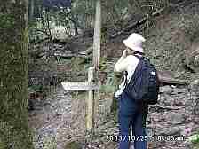 2003/10/25 天気 晴れ 福岡県甘木市と嘉穂町の境にある古処・屏山は、連なる馬見山とまた雰囲気が違うので縦走するとおもしろいと思います。古処山は「コケサン」と言いたくなるぐらい山頂には「苔」が蔓延っています。今日はかみさんと二人で古処山と屏山を縦走することにしました。 縦走と言っても林道で6合目あたりまで車で行けるので往復4時間のコースです。 また、屏山から古処山への途中(古処山の近く)に「奥の院」があるので立ち寄ることにします。 [三角杉とツゲの原始林] 古処山辺りは「三角杉」と呼ばれ、樹齢80年経つりっぱな杉があるそうです。麓から見ると「三角形」に見えるので「三角杉」と言うそうです。(登山口からすぐのところに説明板があります) また古処山には国の天然記念物の指定を受けたツゲの原始林があります。樹齢は100年とのことです。 |