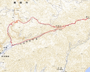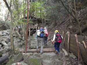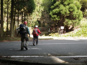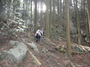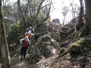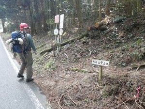 | 迂回路 | 山腹を巻く | 石畳の道となり神木がある |