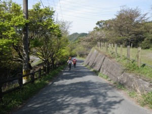 | 急に開けて舗装道に出る(舗装道を右に) | この標識がある | 国道に出たところ |