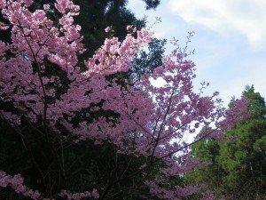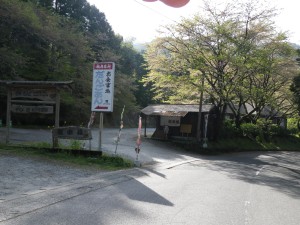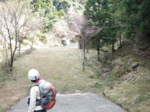| なんと桜満開 | 何桜だろう | キャンプ場のようだが・・・この先右に街道入口 |