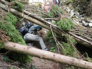 | 右に山腹を巻く | キツネノカミソリと苔むした岩 | 岩場を楽しむ |