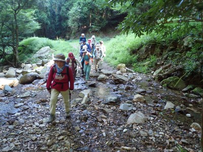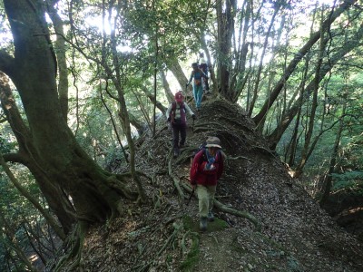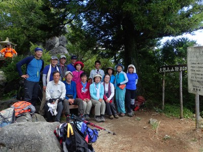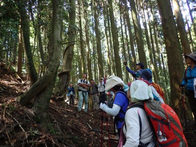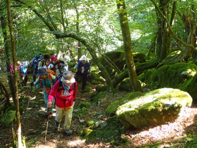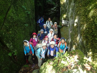 厳しい岩場は、力のある男性群が、か弱い?女性群をサポートし、岩壁で囲まれた部屋「大将隠し」に無事到着。ここで皆で写真を・・・・・おっと私だけ写ってないじゃないか・・・・・