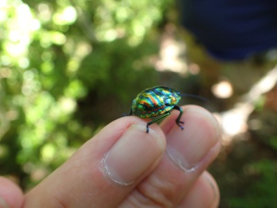 お目当ての花は既に終わっていたようだが、玉虫のようなキラキラしたカメムシには皆ハシャイだ。