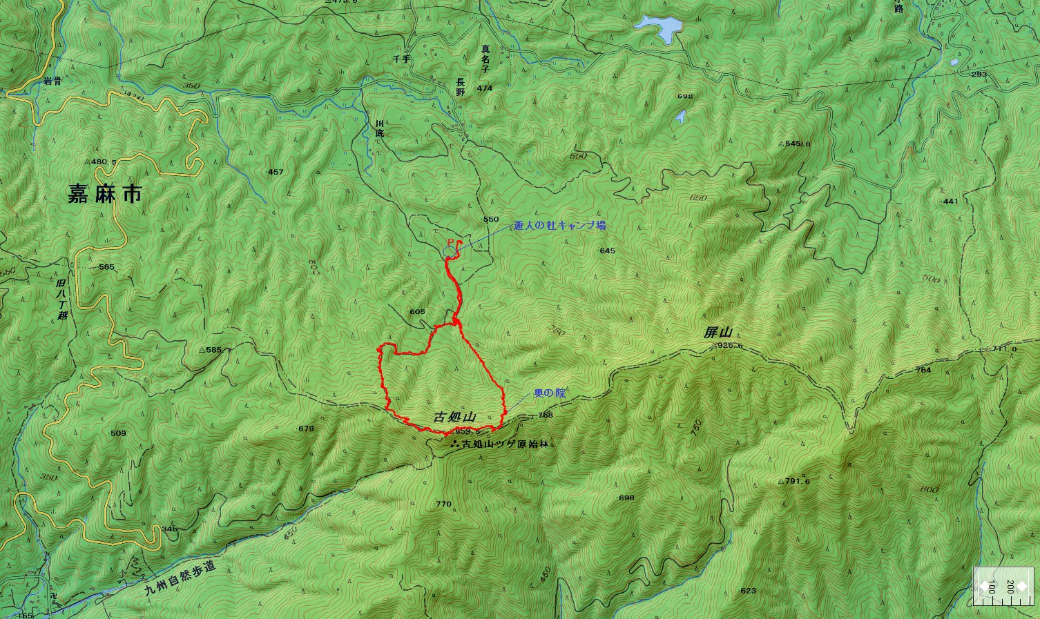 古処山登山コース(GPSによる歩行履歴) 縮尺約2万5千