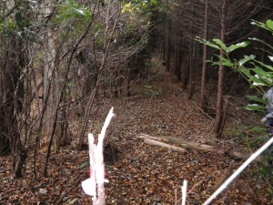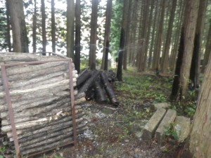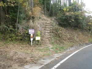 | 立入禁止なのでここから歩く | 椎茸の原木かな | この右手が登山口 |