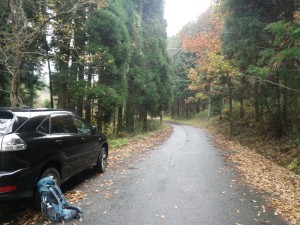| 紅葉とカラス | 左に入ると大音の滝 | 橋を渡って駐車 |