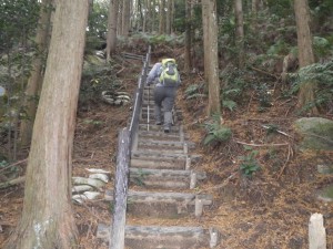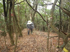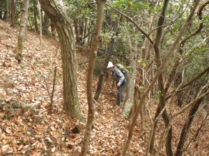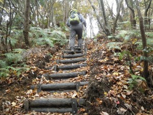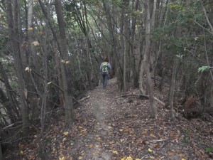 | 植林帯と自然林の尾根 | 大きな石が目に付く | 徐々に勾配がきつくなる |
