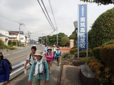 大きなクスの木の先よりオルレコースを降る。妙見神社、薬師堂とあまりひとけがない場所を進み開けると王子池に出る。近くを歩いていた人から昨夕、花火動乱蜂があったと聞く。それは爆音とともに花火が四方八方に飛び散る花火らしい、面白そうだ。住宅地に出るとJR御井駅(みいえき)を目指してのんびりと歩く。誰かが、アイスが食べたいとか言い出したが、コンビニなどはない。駅は無人で自動販売機もなく、電車が来るのを待つだけだ。無事久留米大学前駅に着くと南筑高校に停めてある車に乗車し、最終目的の櫛原天満宮へと移動する。