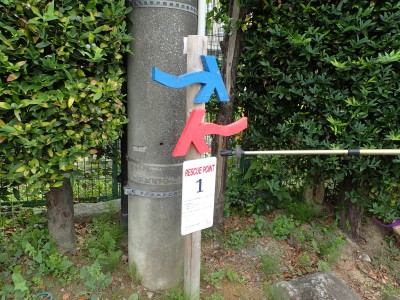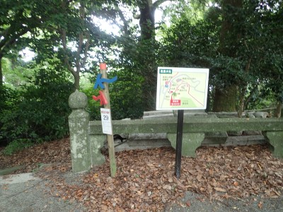 オルレの目印を見ながら石造大鳥居、御手洗池と進む。「夫婦榊」や「馬蹄石」、「孟宗金明竹林」と次々に珍しいスポットが楽しませてくれる。スタート時の暑さも少し和らぎ、森の中のわずかな風がとても心地よい。奥宮でお参りし、菖蒲が咲くとも思えない「しょうぶ池」を見て階段を上がるとトイレのある東屋があるので休憩。森林つつじ公園に出ると大きな売店がある。山頂まですぐだが、ここで昼食をとることに。