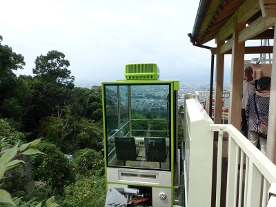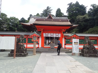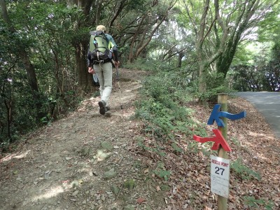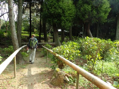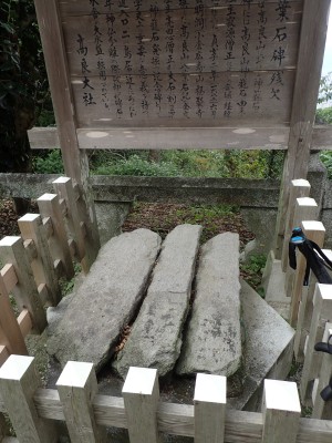 再びオルレのコースに戻り、夏目漱石句碑を見て車道から尾根道へと入る。杉城跡では、珍しい「イジュ」と言う沖縄地方の木が花を落としていた。高良大社に出ると参拝の大勢の人たちで賑やかだ。展望も良く、八葉石と言う神籠石や神木の大きなクスの木など見所もある。参拝をしてしばらくここで休憩をする。