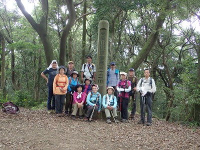 食事を済ませ、山頂へ。展望は全くないが、立派な木柱の表示がある。