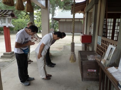 天満宮と名がついているのでそれは立派な境内かと思いきや・・・・。宮司さんは不在なようでお守りは賽銭箱に代金を入れることになっている。全員でAさんの完治と復帰を祈願した。