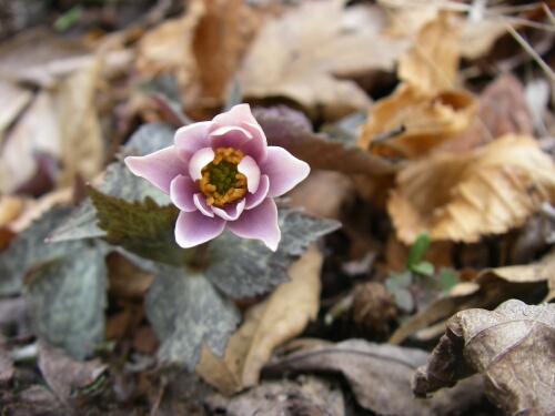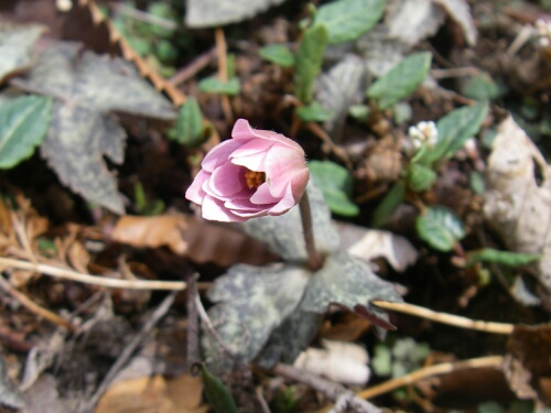 秋に葉が出るため開花時期の葉は痛んでいる | |