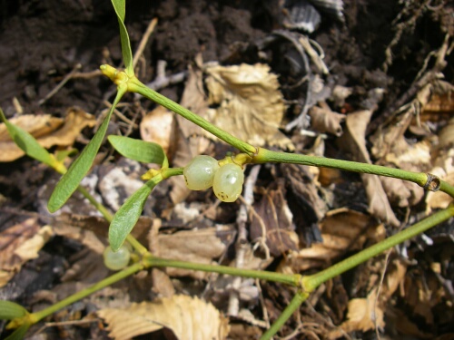 花ではないのですがたまたま見つけたので・・・・・ ヤドリギ 漢字だと「宿木、寄生木」 ヤドリギ科 落葉樹の幹に寄生する (落ちている木を撮影) |