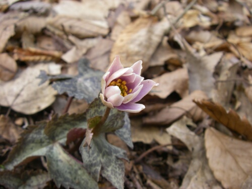 ユキワリイチゲ これから開花しようとしている |
