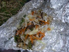 | 何と鱈と野菜のホイル焼き | これもSUMさんから豚肉炒め | これはカラス家のトン汁風鍋 |