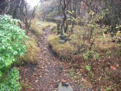 | 五合目標識 | 針窪が見える | 足もとのモミジ |