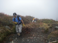 | ガスで何も見えない | とりあえず山頂に向かう | もう少しだが |
