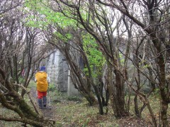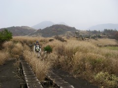 | 振り返る | 山頂が見えてきた | でも強風で諦める |