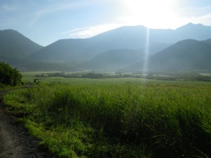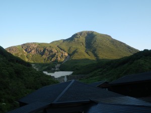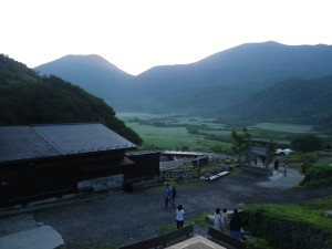 | 前ページより 2013年8月11日(日)天気晴れ ■行程 朝食(6:30)→法華院温泉山荘出発(7:30)→登山口(7:48)→段原(9:24)→大船頂上(10:03)→段原(10:40)→登山口(12:03)→坊ガツル避難小屋にて昼食後出発(12:35)→雨ケ池(13:35)→長者原登山口(14:54)→長者原にて入浴(15:15)→出発(15:50)→道の駅玖珠(16:36)→メタセの杜→下曽根(18:30) ------------------------------------------------------------------------ 周りの声や物音が聞こえ始めたので少し早いが起き上がると、同じ部屋のメンバーも皆起き出した。外を見ると薄暗いが、三俣山には朝陽が当たり始め、日の出も近いことを知る。廊下に出ると少々肌寒い。女性群は理由は色々あろうが早起きである。既に布団は片付けられていた。それにしてもあれだけ飲んだのにトイレは1回だけであった。あのビールはどこにいったんだろう。 朝食では、御代わりの方が最初のご飯より量が多く、もったいないので完食したが、これがもたれて午前中気分がすぐれなかった。(それとも二日酔い?) 法華院温泉山荘を後にして出発である。昨日と違ってとても涼しく、そして空気も澄んでいるようだ。今日は、2名を残し、12名が大船山に登頂する。 坊ガツルは、朝陽を浴びたたくさんの黄色やオレンジ色のテントでまるでアニメの世界である。 登山口から樹林帯に入り、しばらくは涼しい歩きとなる。後方から手ぶらの登山者数人に追い越される。身軽でうらやましい気もするが、我々は慎重派である。 さらに前方からは、早くもご来光をされた方々が、やはり身軽な格好で降ってくる。若い人が多く、最近の山ブームを感じる。 何度も休憩をして30分遅れで段原に着いた。5合目で展望を愉しんだが、ここ段原からの展望も素晴らしい。九重の峰々が一望できる。大船山は目の前に黒く背を伸ばしているが、なぜか遠くに感じる。ここから樹林帯の平坦な道をしばらく進み、開けると急登となるが、景色は最高である。なにしろ北大船山を上から見れるのである。山頂に着くと昨日から行動が偶然一緒になっていた若い女性2人組が写真を撮っていたので集合写真を撮っていただくようお願いした(ありがとう)。 しばらく360度の大展望を愉しむ。ここまで来ると涼しくてここから離れたくない気分であるが、待っている人もいるし、遅くなるので未練もあるが下山を始める。来た道を慎重に戻り、登山口で待っていた二人が笑顔で迎えてくれた。きっと待ち遠しかったことであろう。 新しくなった坊ガツル避難小屋で昼食を摂る。炊事棟で水補給するが、これが冷たくておいしい。自然の恵みにここでも感謝である。 そしていよいよ下山。坊ガツルから雨ケ池経由で長者原とこれまであまり花を見ることがなかったが、それをまとめたかのように花々に出会う。 きっと皆満足の山行であったのではないだろうか。おまけは長者原ヘルスセンターで入浴。私は10年ぶりくらいだが、きれいになっていた。 車での帰路も順調に無事出発地点である下曽根に着く。 この二日間、自然に山に仲間に、そしておいしい食事と清潔な寝床を準備してくれた法華院温泉山荘の皆さんに感謝。 |