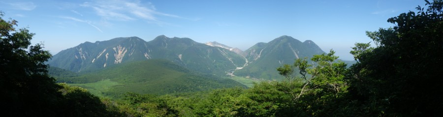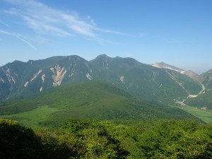 | ▲5合目からの展望(右に三俣山左に稲星山) | ||