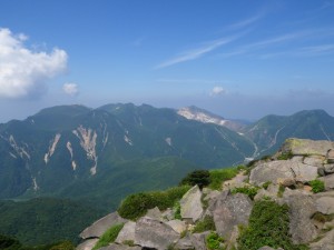 | 立中山との分岐 | 降りは特に慎重に | 三俣山が見える |