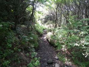 | 下山は往路を戻る | 樹林帯の平坦な道を快適に歩く | 再び段原(10:40) |