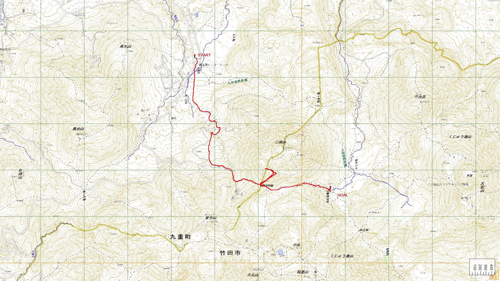 九重登山コース(GPSによる歩行軌跡)