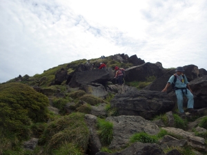 | 天狗ケ城を目指す | 御池を見下ろしながら歩く | 天狗ケ城頂上にて(11:40) |