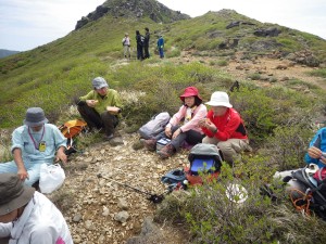 | 降りは特に慎重に | 鞍部で昼食 | シャクトリムシがたくさんいた |