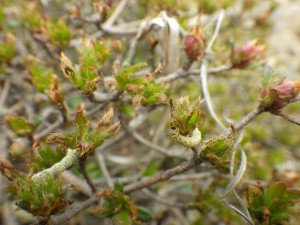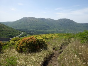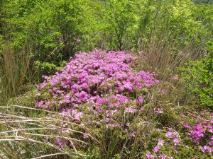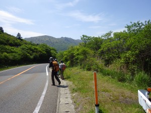 | この辺りのミヤマキリシマはもう満開 | 黒岩山、泉水山を見ながら進む | 大曲登山口(14:07) |
