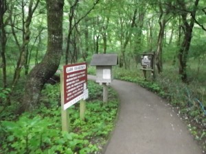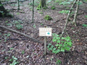 | 登山口を出発(6:33) | バイケソウの花 | 木の名札がある |