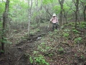 | 急降下する | 滑りやすい真っ黒い土 | 鞍部分岐に出た(13:27) |