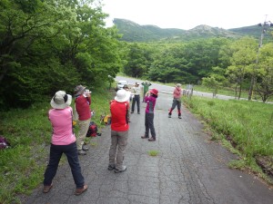 | 八丁原登山口手前の駐車スペース(9:00) | 登山口 | ここで準備体操(9:08) |