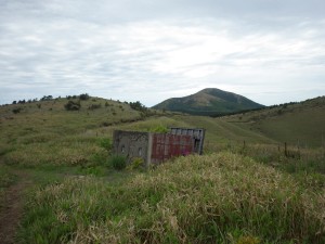 | 手前がミソコブシ山、奥が涌蓋山 | 九重連山 | 倒れたトイレ |
